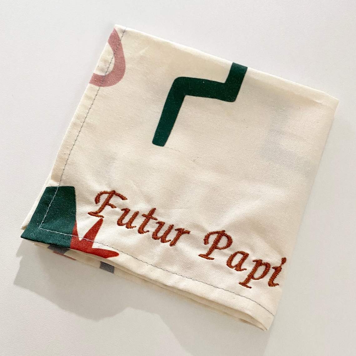Vos mouchoirs en tissu bio personnalisés avec une jolie broderie faite à Orléans.