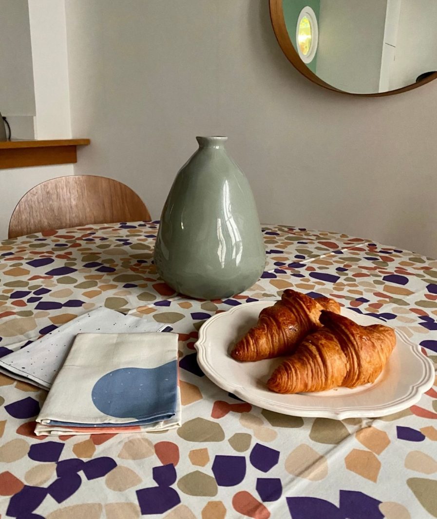 Nous avons choisi de travailler avec un atelier parisien centenaire labellisé « Fabriqué à Paris » pour nos nappes 150x150cm.
