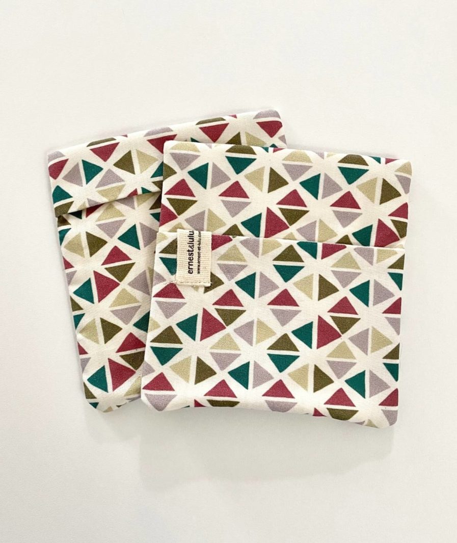 Chez ernest&lulu, nous avons conçu la pochette géométrique pour vous permettre de confiner vos microbes avant lavage.